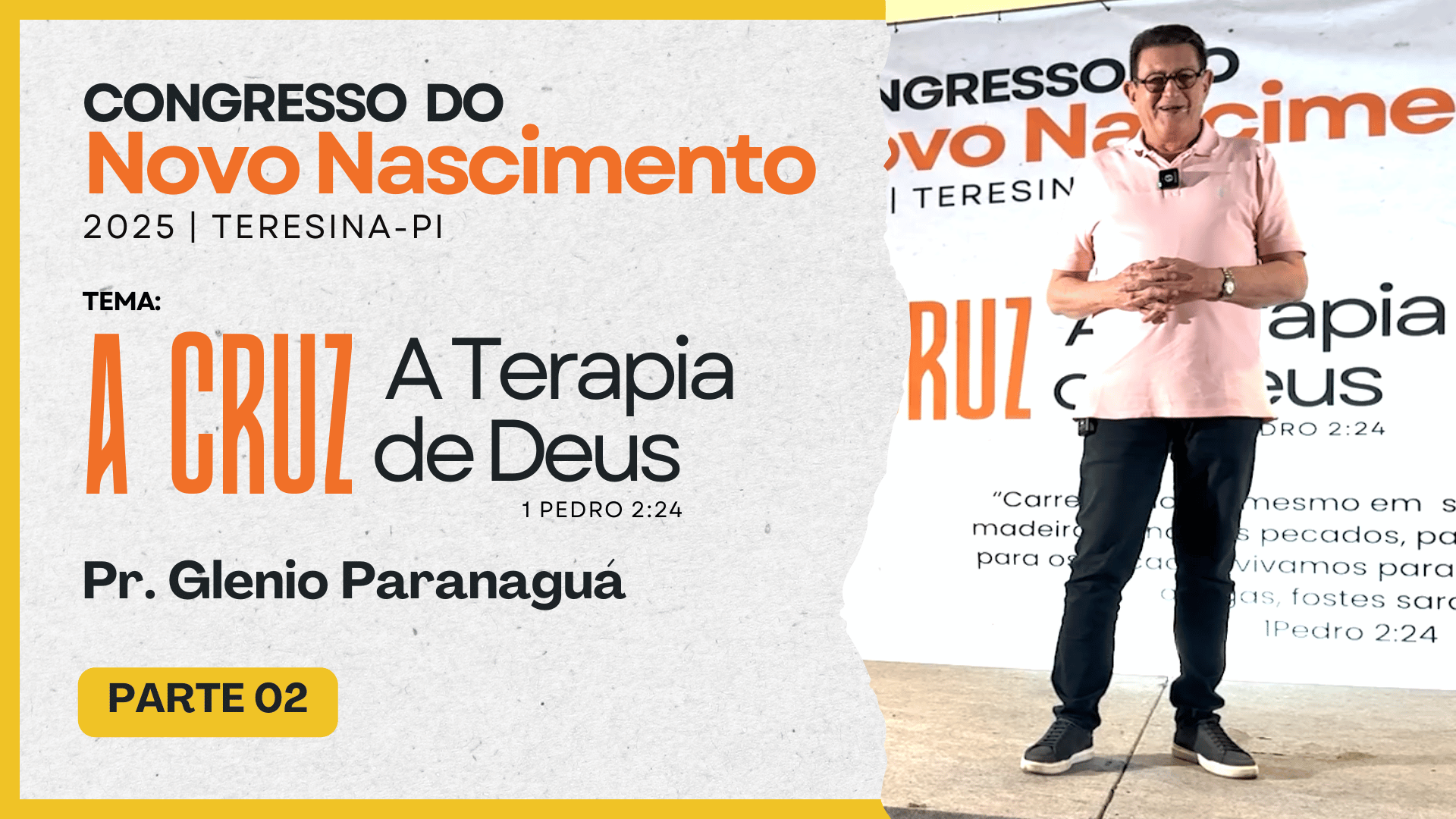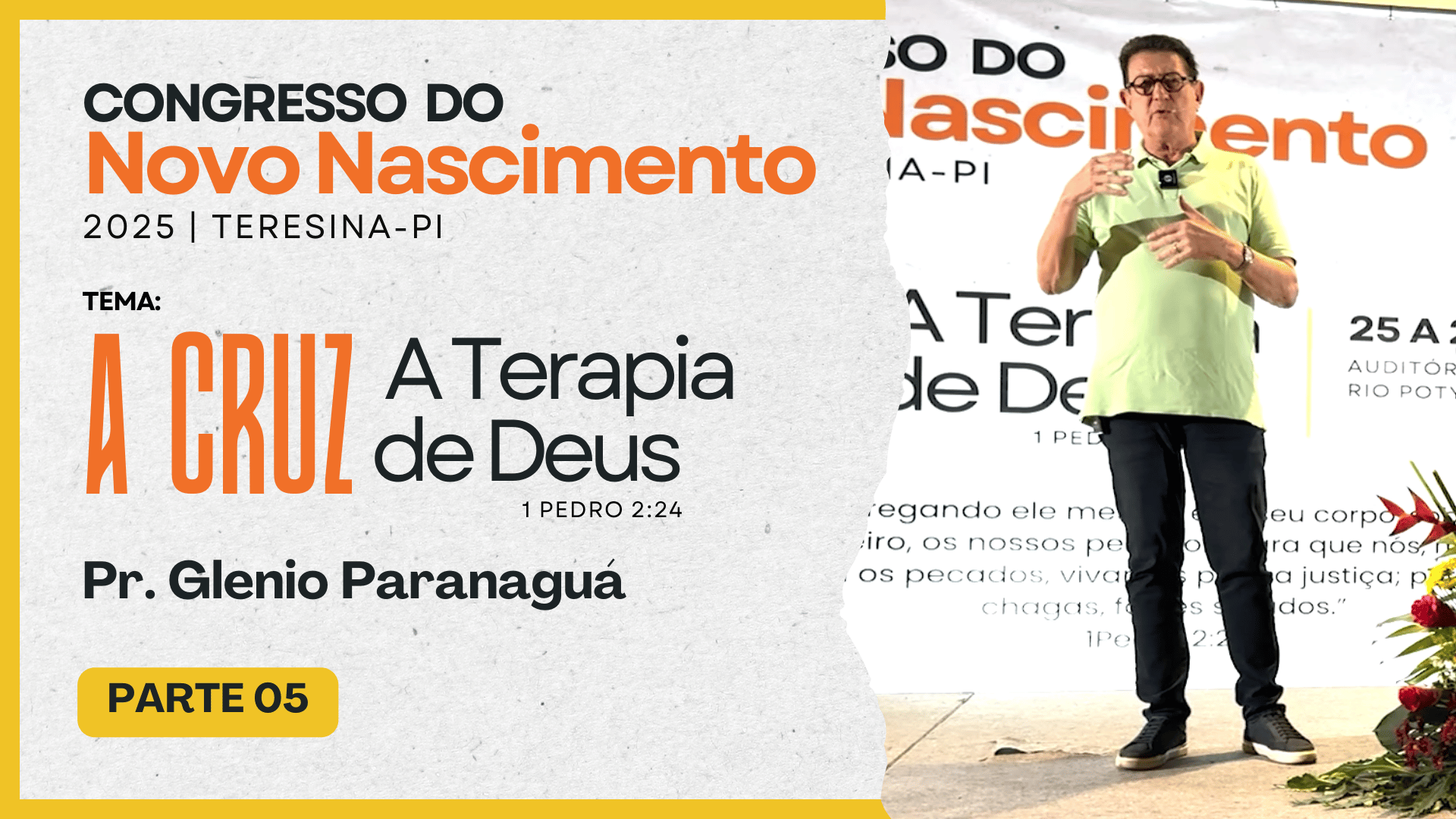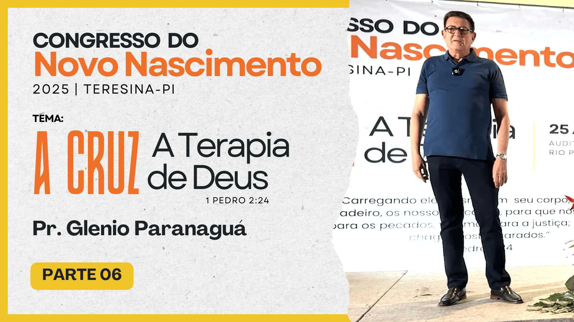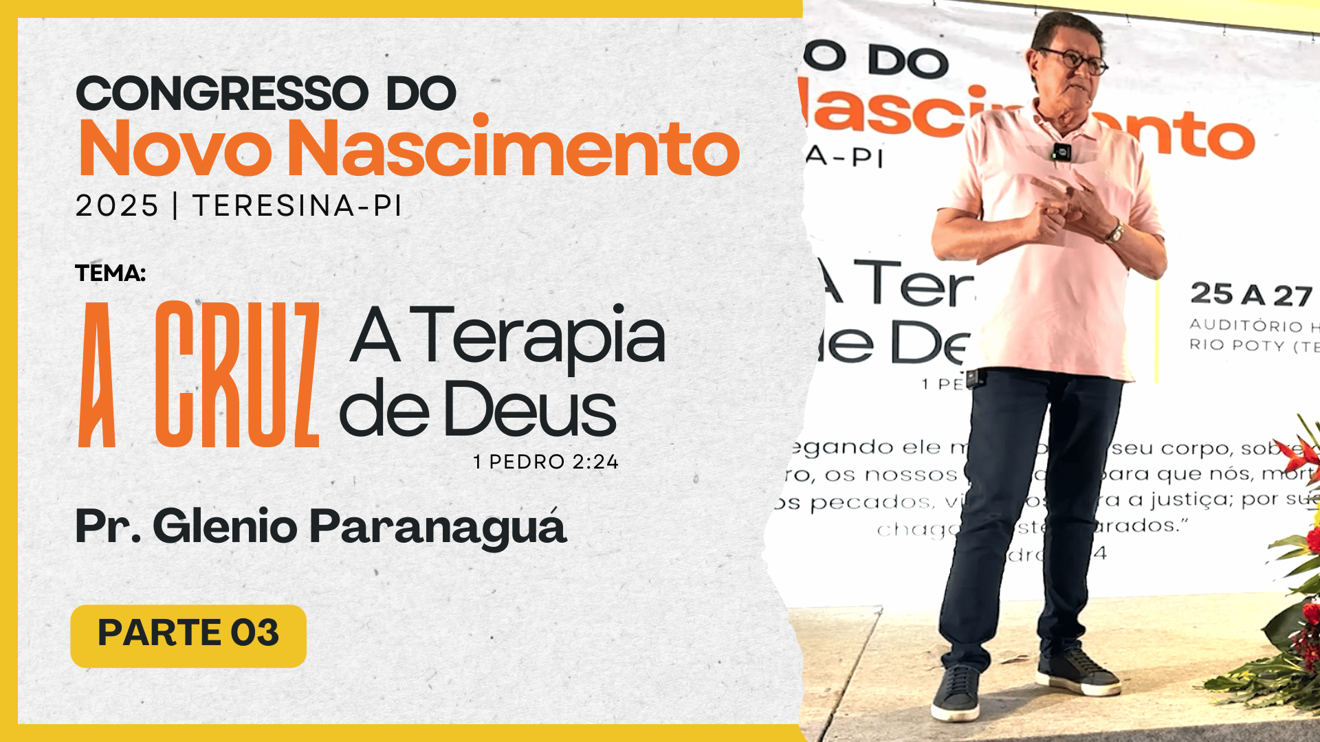 CONGRESSO LITERATURA COM PROPÓSITORealizado nos dias: 25 a 27 de julho de 2025 -No Auditório Hotel Blue Tree Rio Poty (Teresina-PI)Preletor: Glenio Fonseca ParanaguáTema: A CRUZ – A Terapia de Deus – 1 Pedro 2:24 Assista as palestras Reproduzir Reproduzir Reproduzir Reproduzir Reproduzir Reproduzir